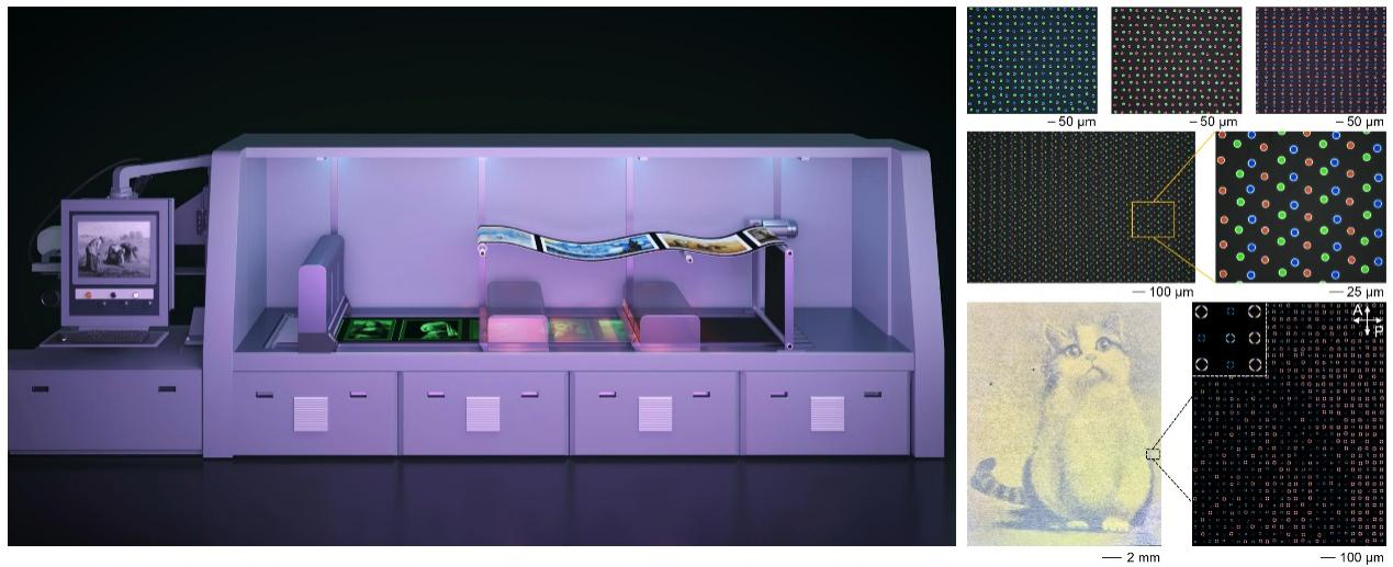 持续的技术调整后,打印出的图案逐渐从模糊到清晰,凌乱的墨滴幻化为精美的图案。当看到光学超材料在设备上成卷成米打印出预设的照片,宋延林为自己的团队感到骄傲。